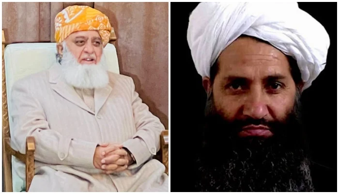 افغان طالبان کے سپریم لیڈر ملا ہیبت اللہ اخوندزادہ سے جمعیت علمائے اسلام کے سربراہ مولانا فضل...