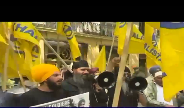 پاکستان پر جھوٹے الزامات لگانے کیخلاف لندن میں بھارتی ہائی کمیشن کے باہر سکھ برادری کی احتجاج۔...