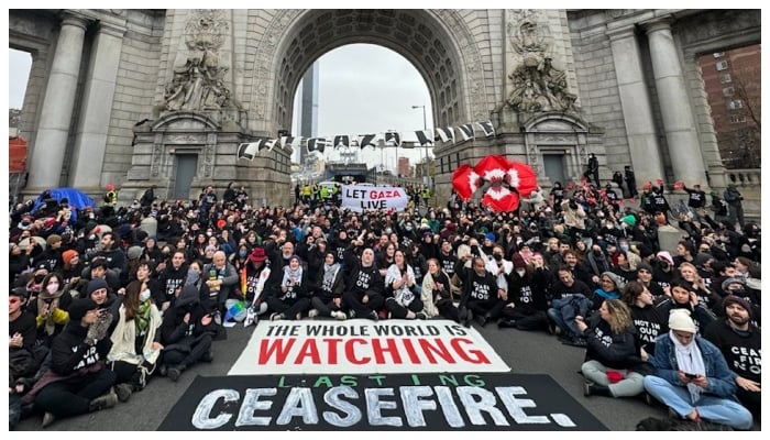 امریکا میں یہودی تنظیم نے غزہ پر اسرائیلی مظالم کے خلاف احتجاج کرتے ہوئے نیویارک کے مین ہیٹن پُل کو دھرنا دے کر بند کردیا۔